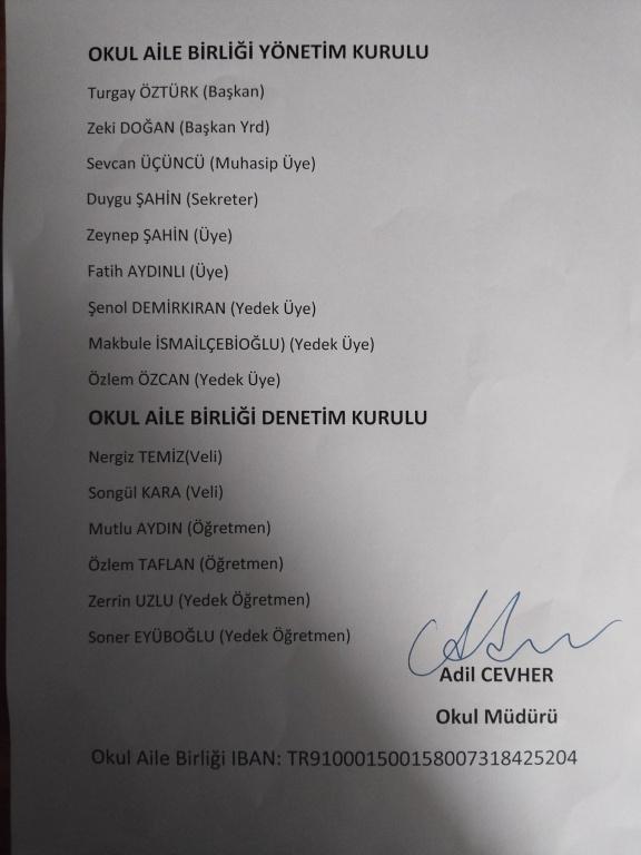 OKUL AİLE BİRLİĞİ Yönetin ve Denetim Kurulu